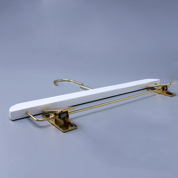 White wooden hangers with gold hangers bottom bar clip for pant skirt